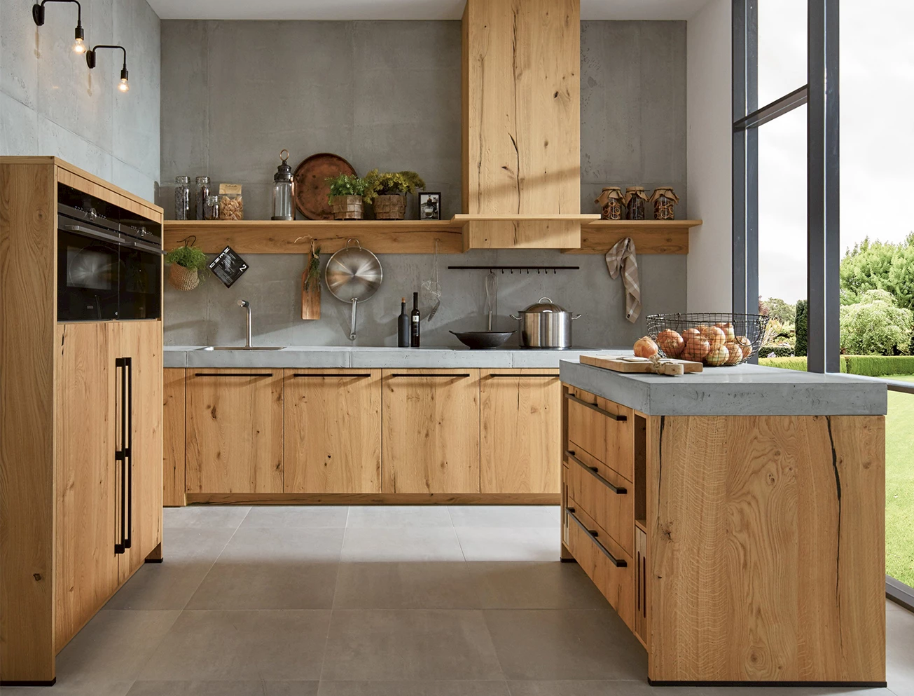 4. Beige keuken: met een beige U-keuken met raam kies je voor een warme, rustige look. Maak bijvoorbeeld een combinatie van mat beige fronten, een licht marmerlook werkblad en koperkleurige of goudkleurige accenten. Of kies voor mat beige en houtlook fronten met reliëf, een houtlook werkblad en goudkleurige accenten.