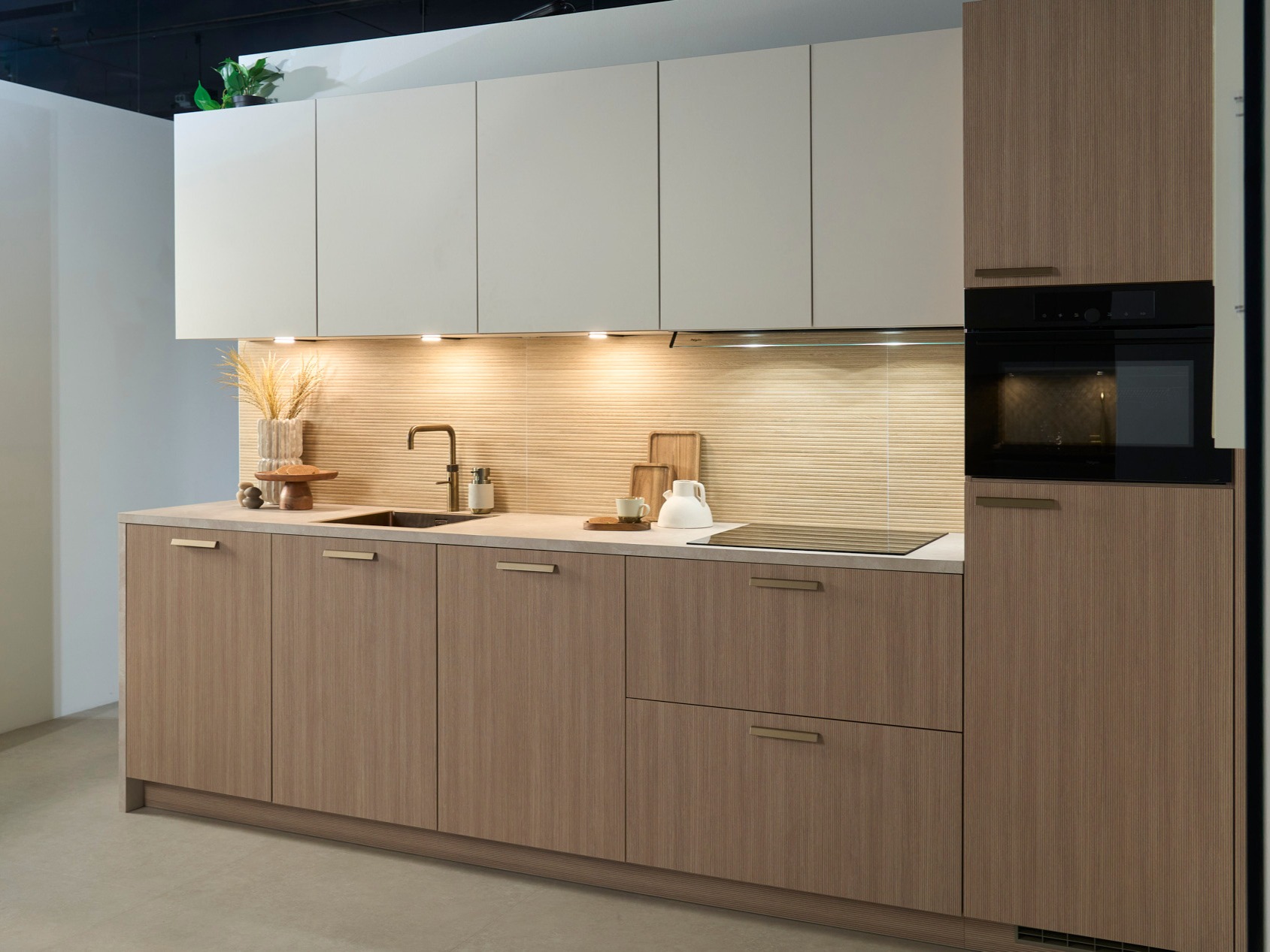 Keukens met materialen zoals hout, marmer en natuursteen blijven populair. Ze stralen kwaliteit uit en zorgen voor een warme, gezellige sfeer. In 2026 zien we vooral warme tinten terugkomen. Denk aan beige, mokka en taupe. Kleuren die rust brengen en makkelijk te combineren zijn. Onze Easy Touch Sand is daar een goed voorbeeld van.